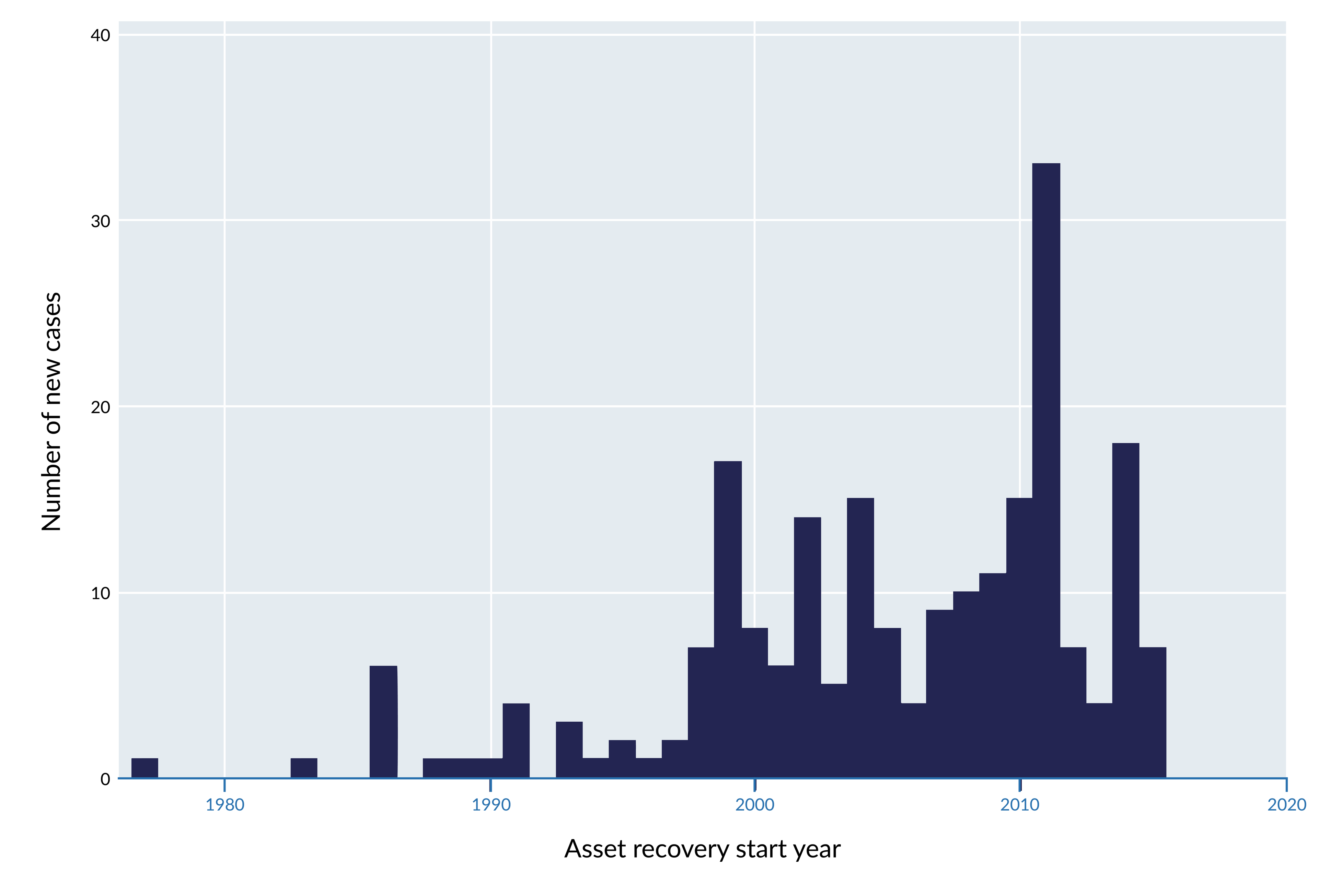 Figure 1: New asset recovery cases started per year (author’s calculation based on StAR database)