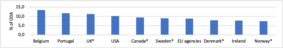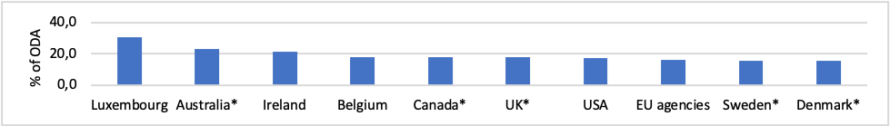 Figure 2 shows the top 10 most exposed members of OECD’s Development Assistance Committee (DAC) in terms of the percentage of ODA they direct to the countries ‘most vulnerable’f61fe6755d63 to CC. The presence of relatively small donors is due to the concentration of their ODA on key vulnerable countries: the Sahel for Luxembourg; Papua New Guinea for Australia; Ethiopia and Democratic Republic of Congo for Ireland; and D.R. Congo for Belgium. (Asterisked donors are U4 partners.)