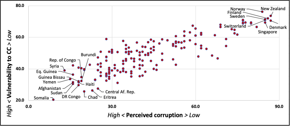 The correlation between vulnerability to CC and perceived corruption is clear, as shown by Figure 1.