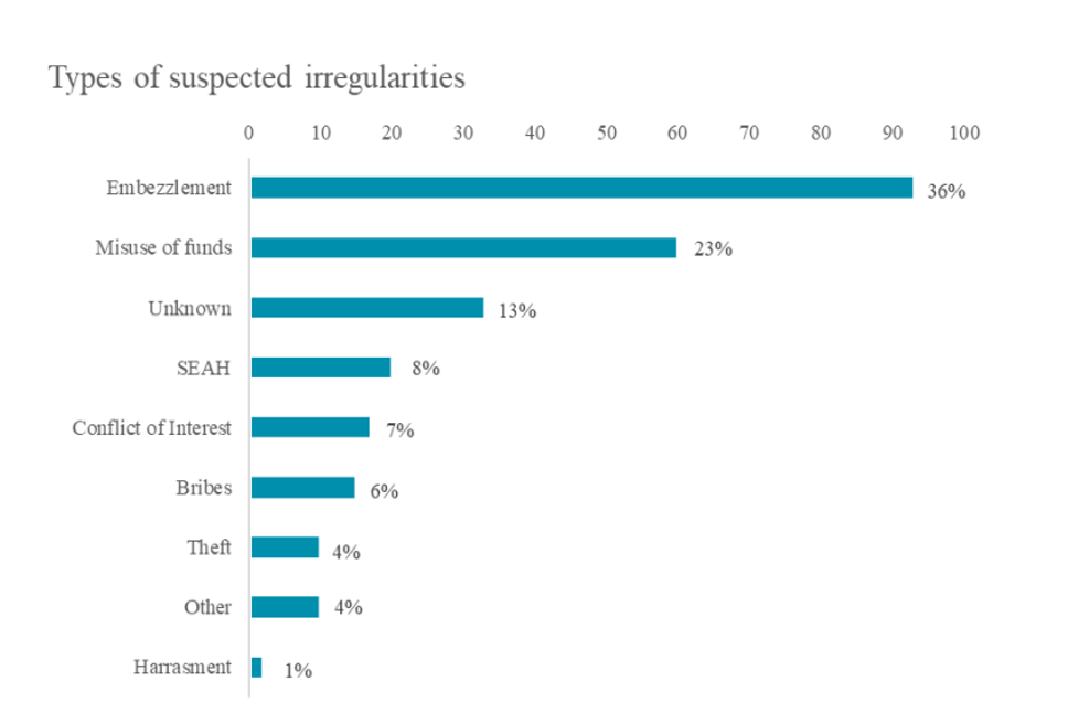 Corruption has been cited as one of the largest impediments to receiving aid in some of the most challenging development contexts, such as south-central Somalia and Afghanistan (Harvey 2015). Despite this recognition of the challenge, allegations of major corruption cases continue to emerge, such as the recent one surrounding the United Nations Office for Project Services (UNOPS) where US$60 million of donor funds were misdirected to an entity to build housing in six countries – which did not materialise (Ainsworth 2022; Kapila 2022). Customising anti-corruption measures to a particular programme and consequently costing activities, and allocation or earmarking funds for context and project appropriate corruption risks in aid investments could be one way to manage these issues.