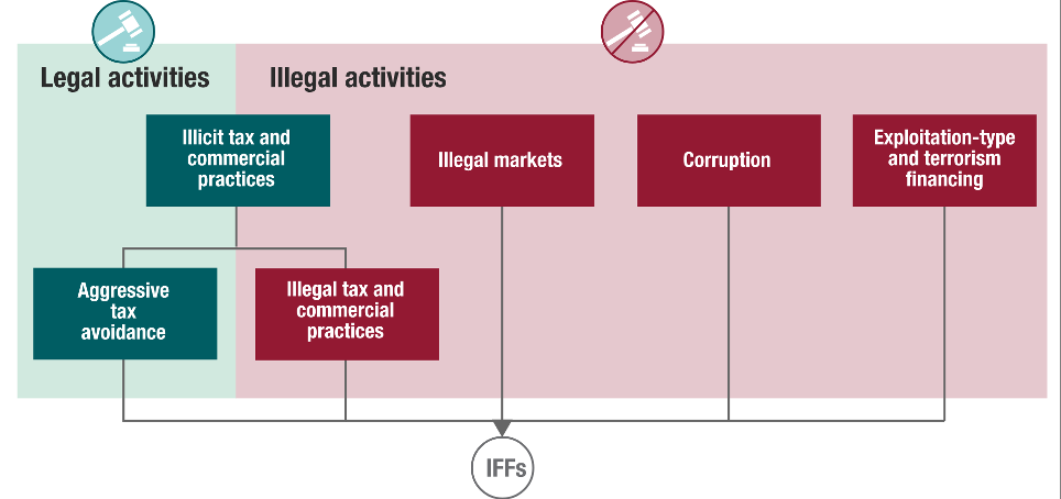 The debate on the definition of IFFs often centres on whether to adopt narrow or broad definitions. Narrow definitions focus on strictly illegal activities, such as money laundering, tax evasion, organised crime, corruption and other illegal flows. Conversely, broader definitions include activities that are technically legal, such as exploitation of regulatory loopholes and aggressive tax avoidance (U4 n.d.).