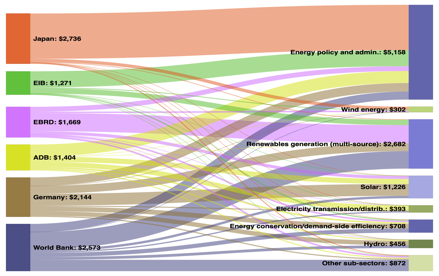Figure 2: Top sources of energy sector climate-related development finance, 2019 (US$ million)*