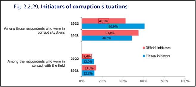 The results across 2021 and 2022 indicate overall balanced levels of school officials and citizens being responsible for initiating such incidents of corruption (see Figure 5).