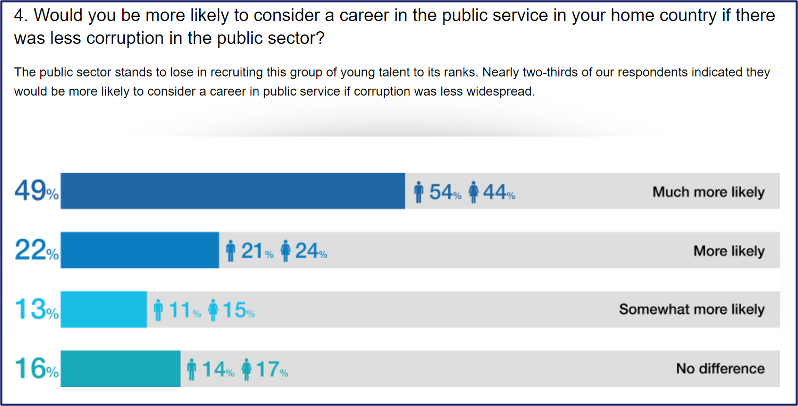 The uneven playing field that corruption in recruitment creates can lead to wider disillusionment with the public system (Bashir 2023). Indeed, responses to the 2014 MY World survey attested to this point (see Figure 2).