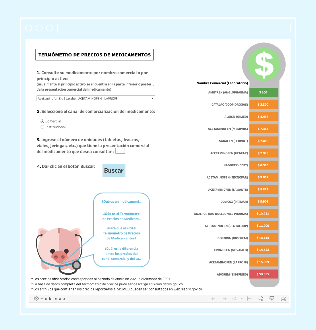 Source: Ministry of Health and Social Protection, Drug Price Thermometer – MinSalud website.